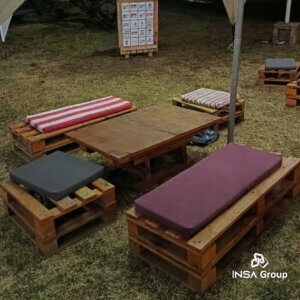 Nuestros livings hechos con pallets reciclados ofrecen un toque rústico y ecológico a tus eventos. Con mesas, sillones y almohadones, estos conjuntos crean áreas acogedoras y cómodas para que tus invitados puedan relajarse y socializar.